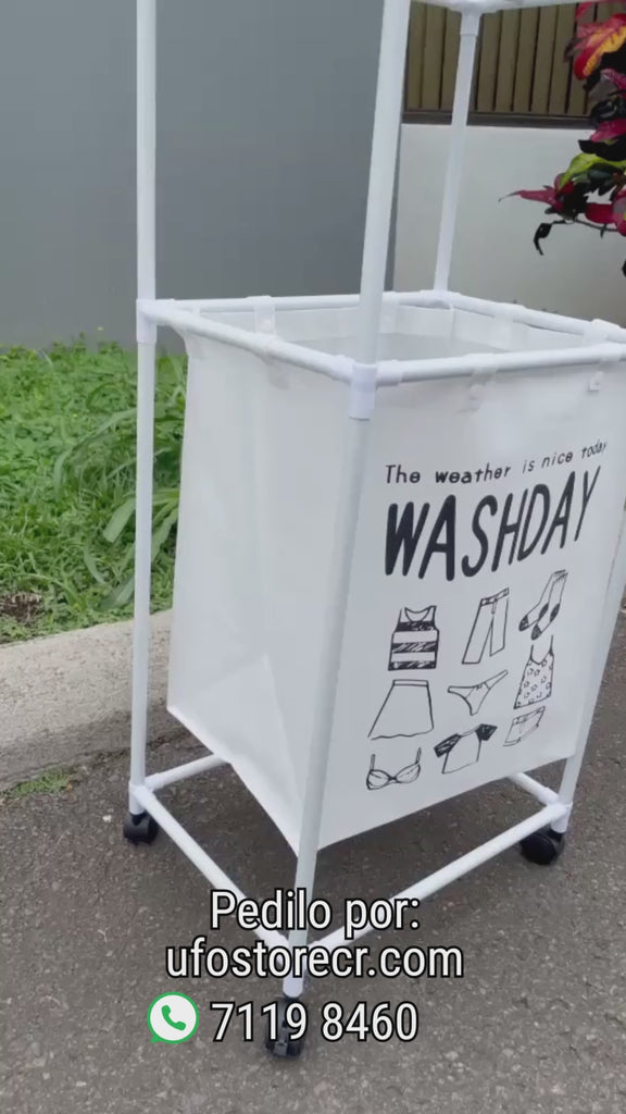 Ideal para mantener el orden en tu espacio. Este organizador cuenta con dos repisas superiores para colocar productos de limpieza, ropa doblada o accesorios, y una canasta inferior para la ropa sucia o para transportar prendas fácilmente.