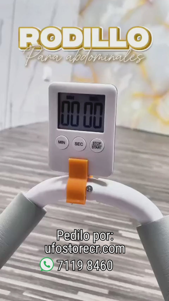 Viene con una alfombra de foam para proteger las rodillas y un contador digital con alarma que marca el tiempo de entrenamiento.